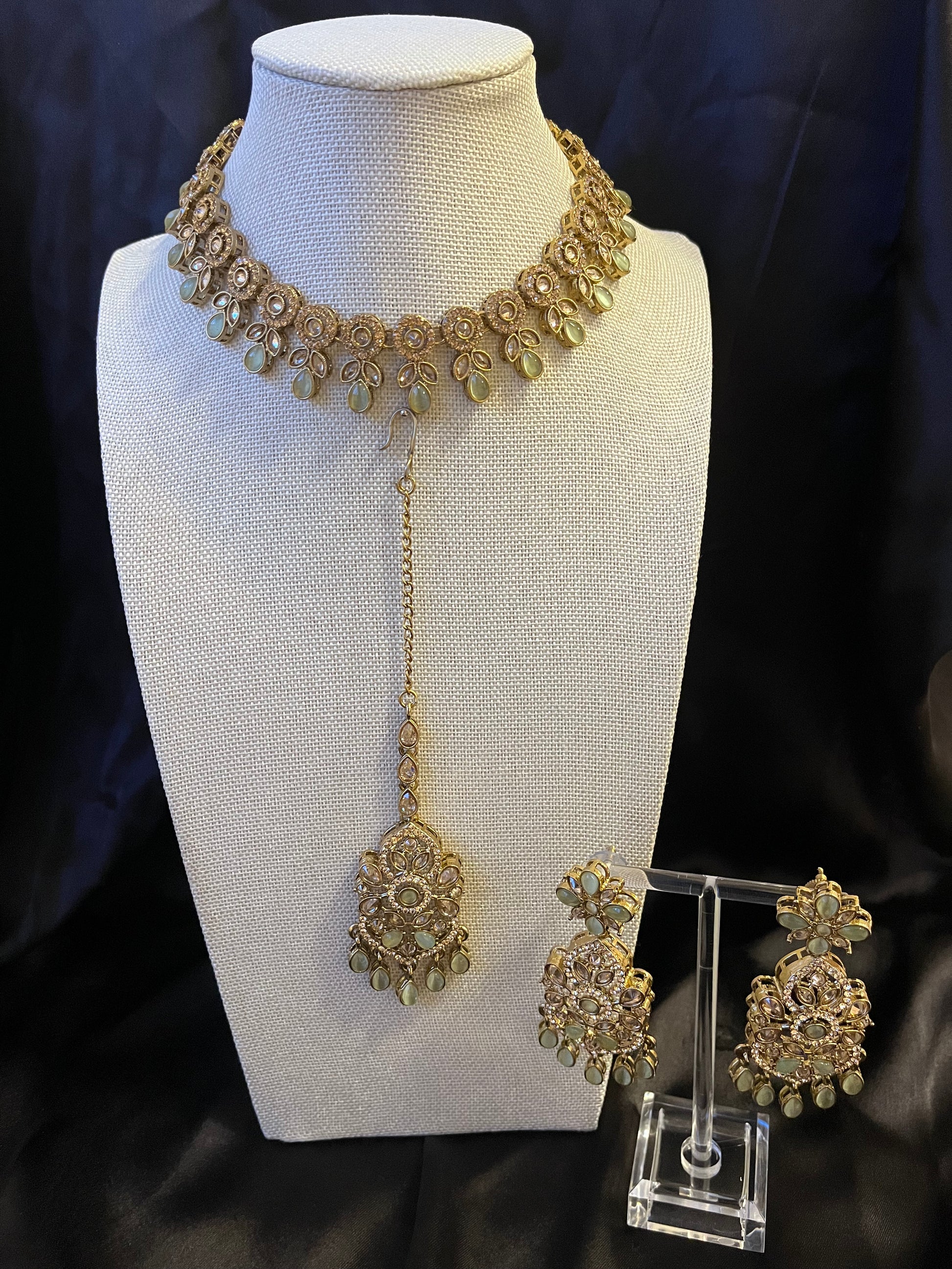 This elegant set can be adjusted to fit as either a necklace or a choker.