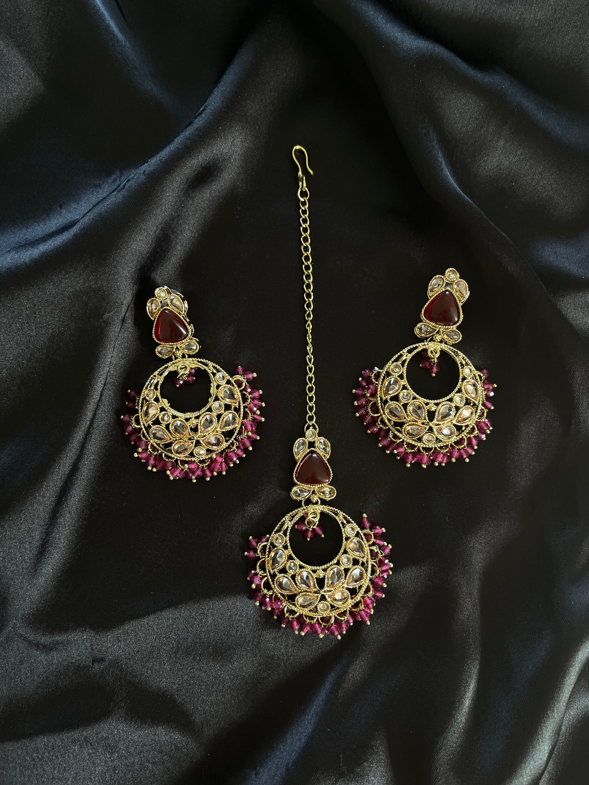 A beautifully paired traditional earring & tikka set.