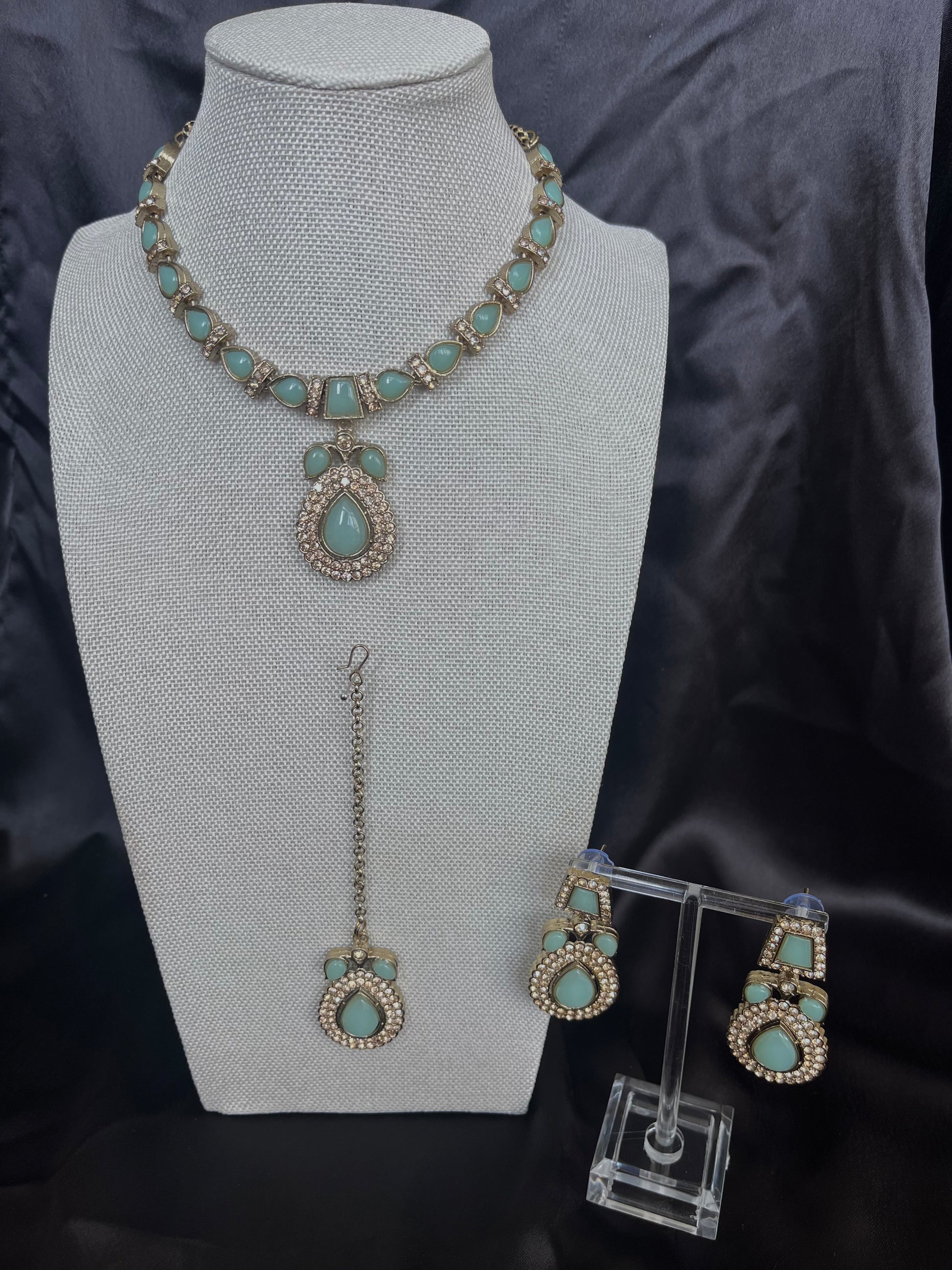 This pendant necklace set can be adjusted to sit at different heights to fit your neckline.
