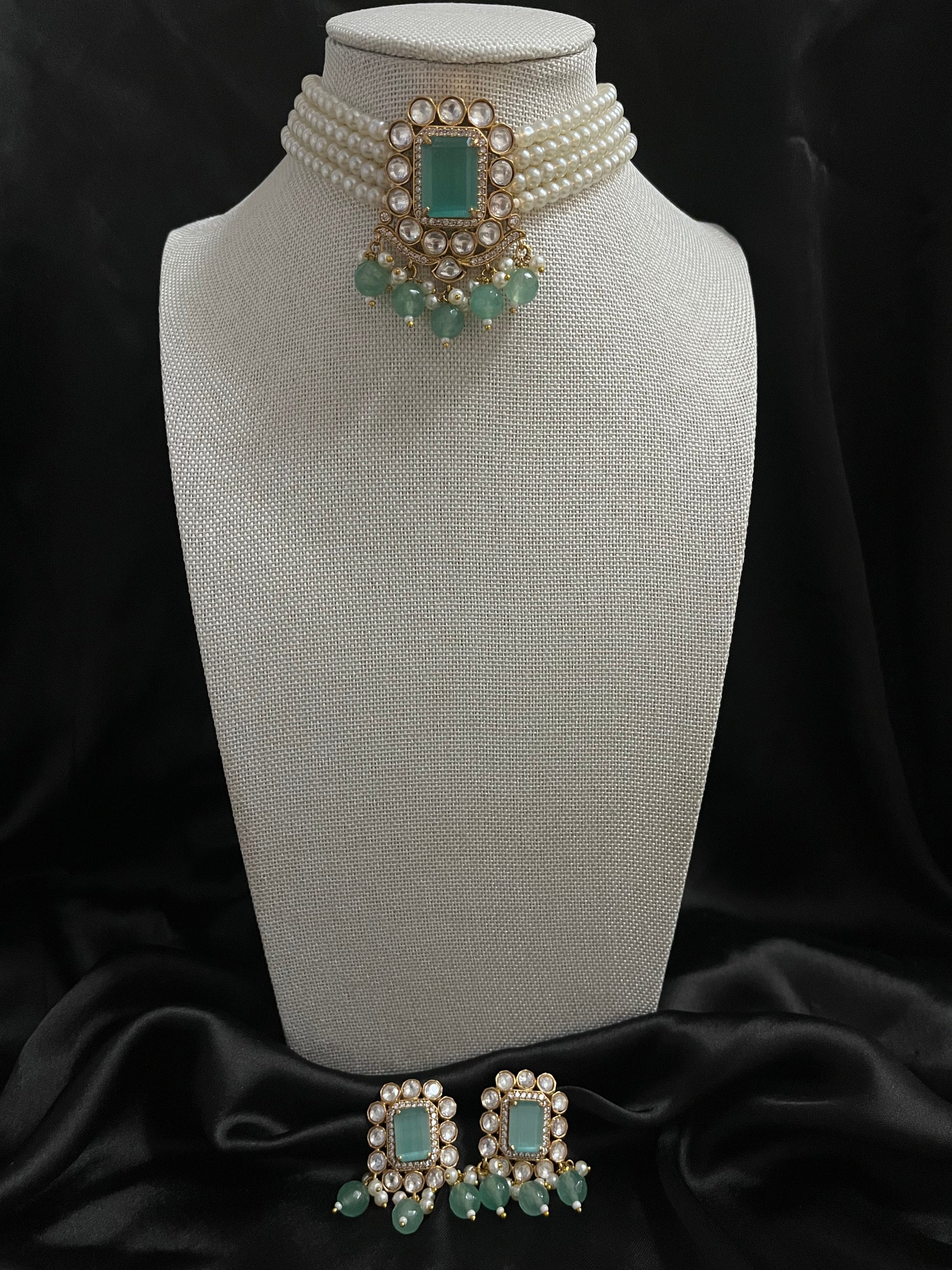 A elegant statement choker with beautifully paired stud earrings.