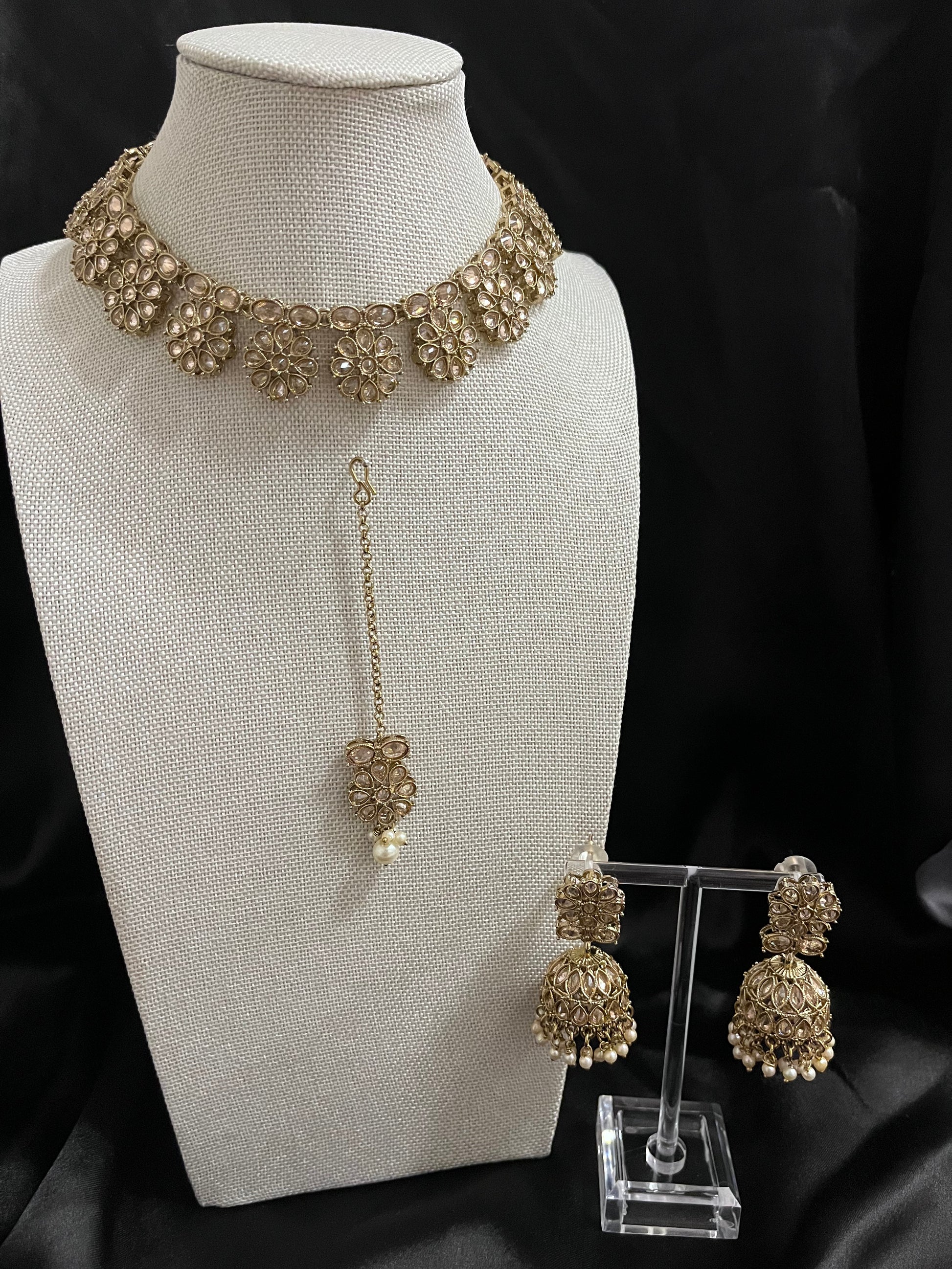 This elegant set can be adjusted to fit as either a necklace or a choker.